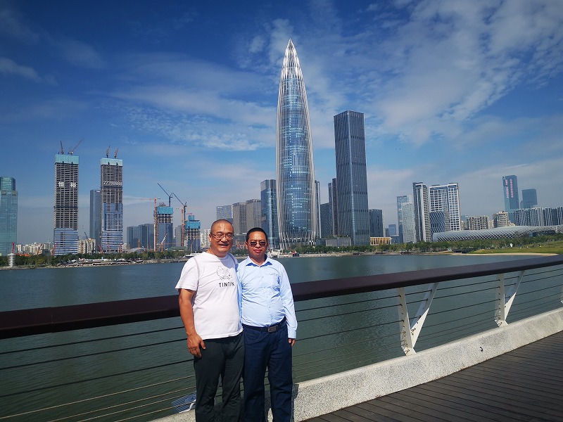 在路上李總給員工講深圳灣近年變化,聊聊天;在海邊吹著海風,回蕩的是大家陣陣笑語歡歌。